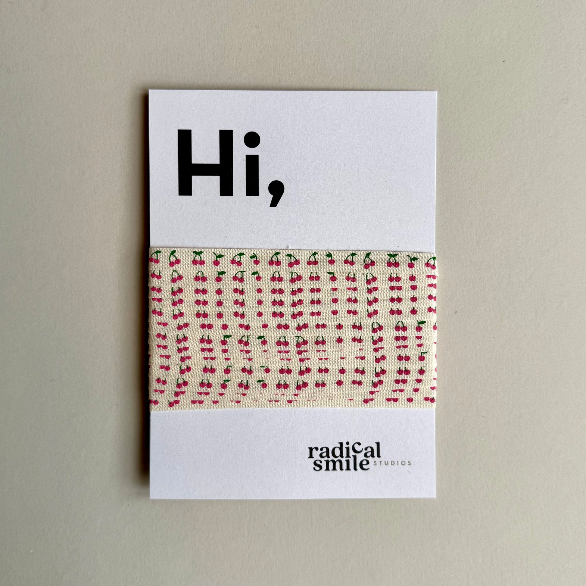 Mit diesem süßen Kirsch-Geschenkband kannst du deine Geschenke bequem und einzigartig verpacken. Das Band haben wir auf eine Karte gewickelt, die du später als Postkarte verwenden kannst.