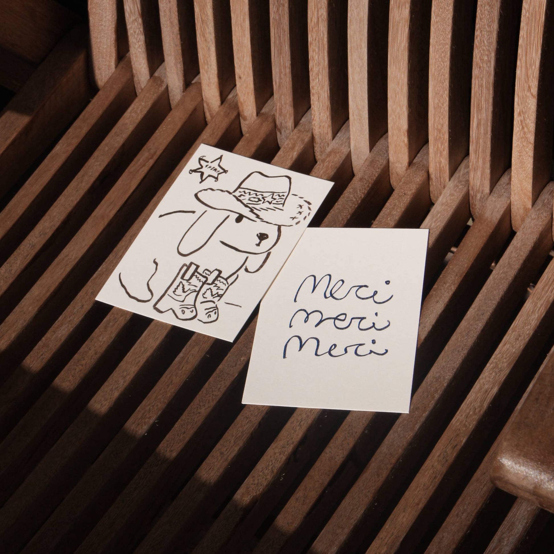 Beschreibung: minimalistische Grußkarte mit Kaninchen-Cowboy Motiv.