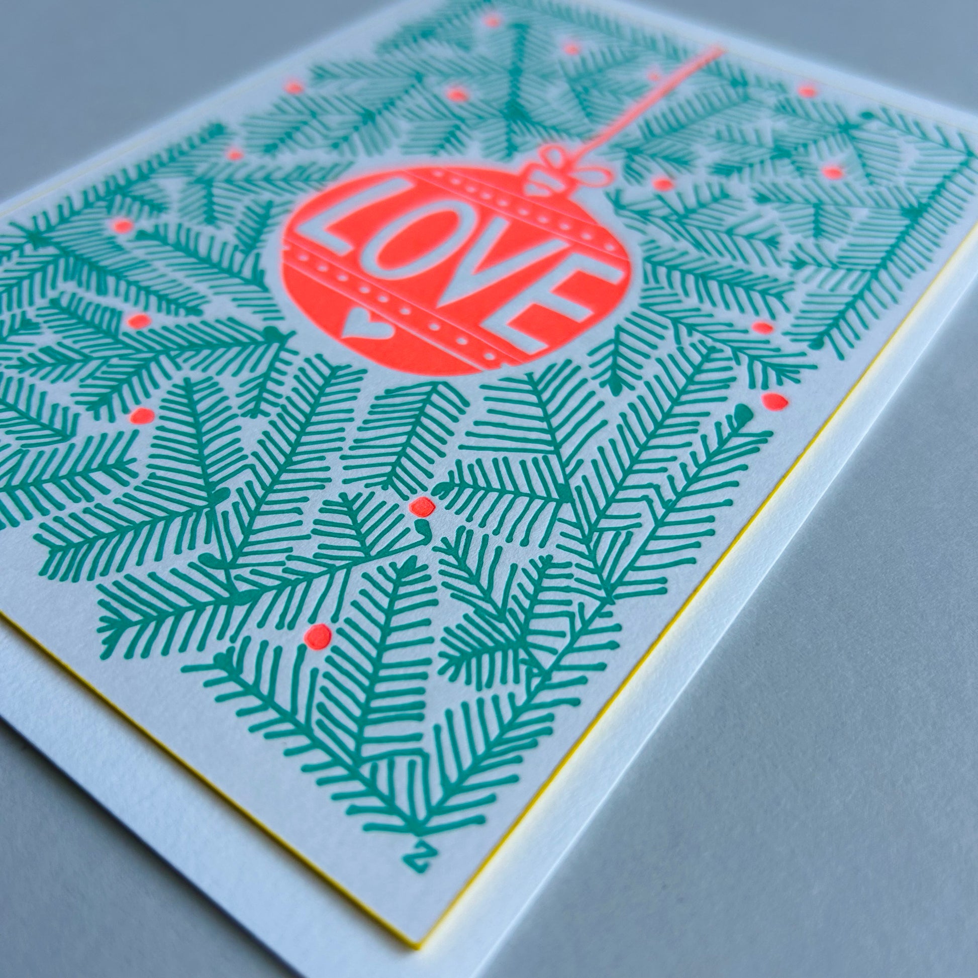 "LOVE", Zweige & Kugel mit gelbem Farbschnitt